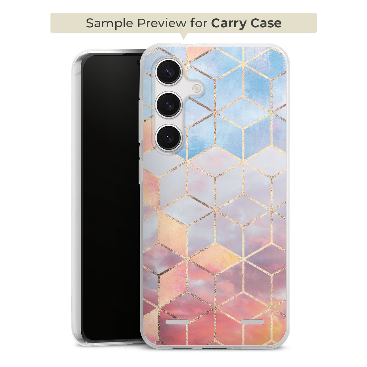 For our Carry Case Single we are using our advanced direct printing technology. The backside is fully printabale, the frame is left unprinted. You can order the phone case without print, printed completely or also with a partial print. Choose one of our exclusive, pre-made shop designs or let your creativity shine and create your very own unique design with your pictures, overlays and text.