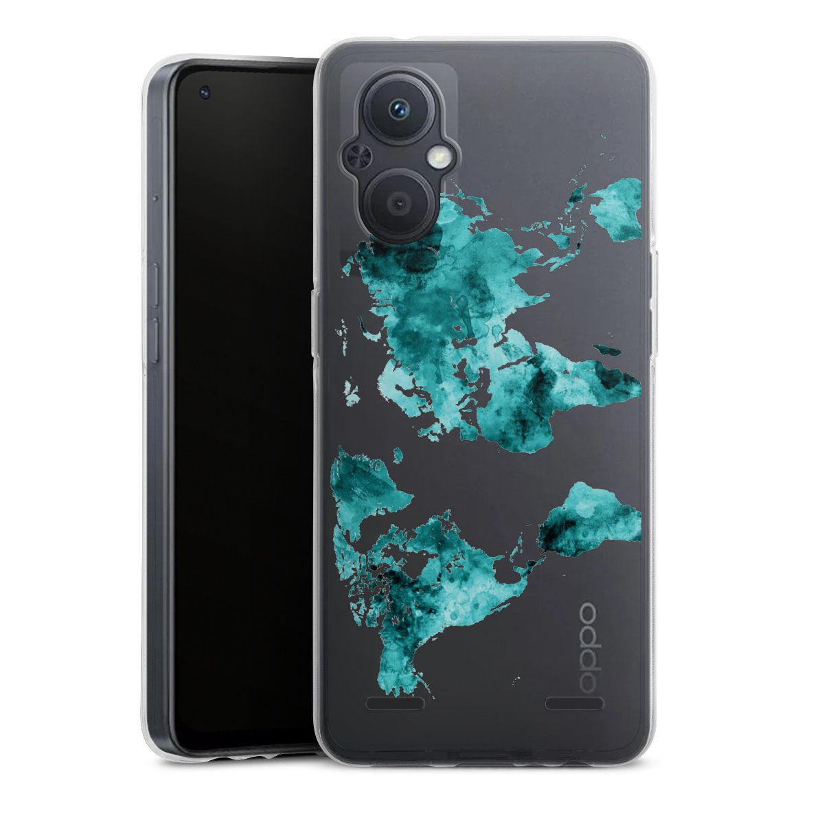 World Map Teal Transparent