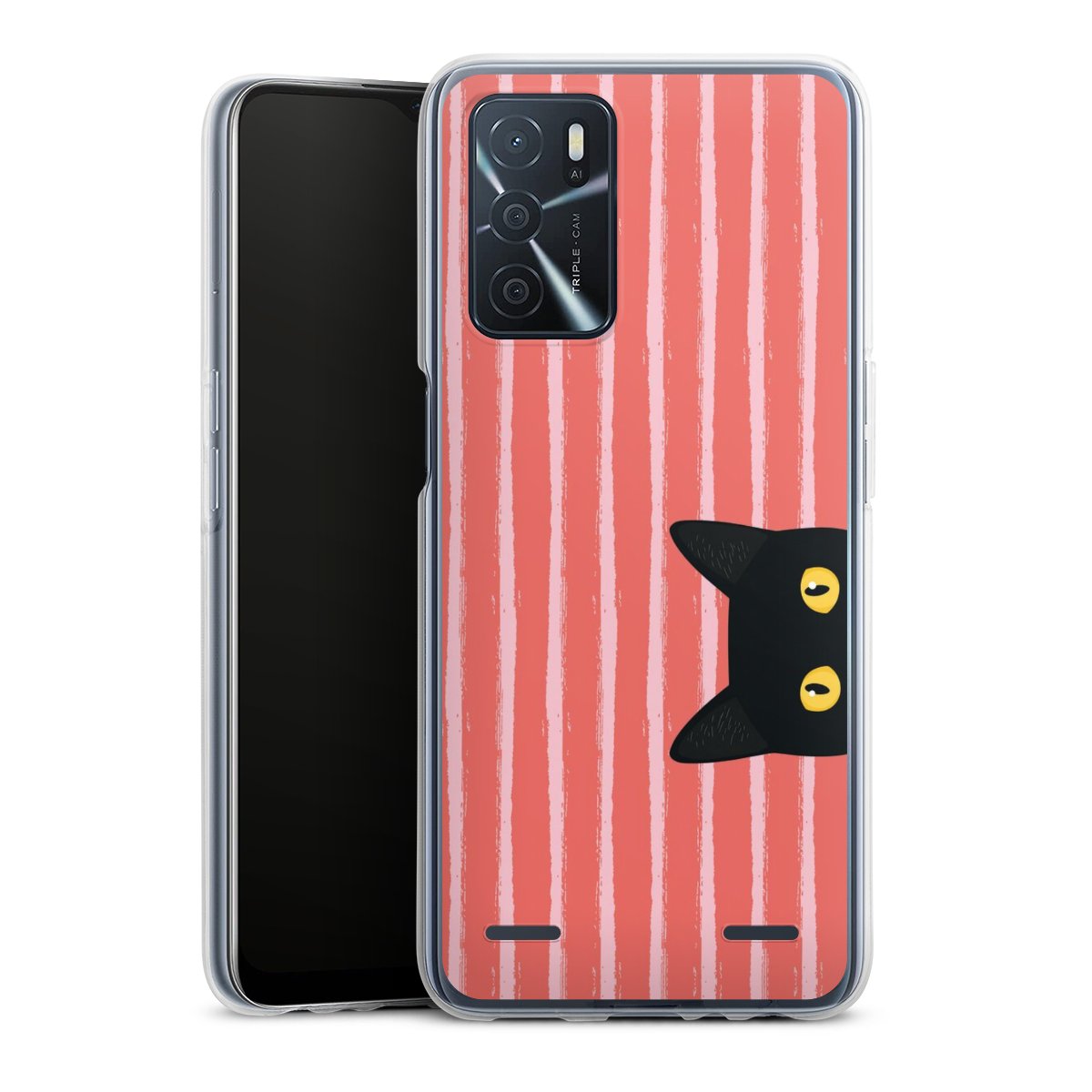 Black Cat on Orange Stripes
