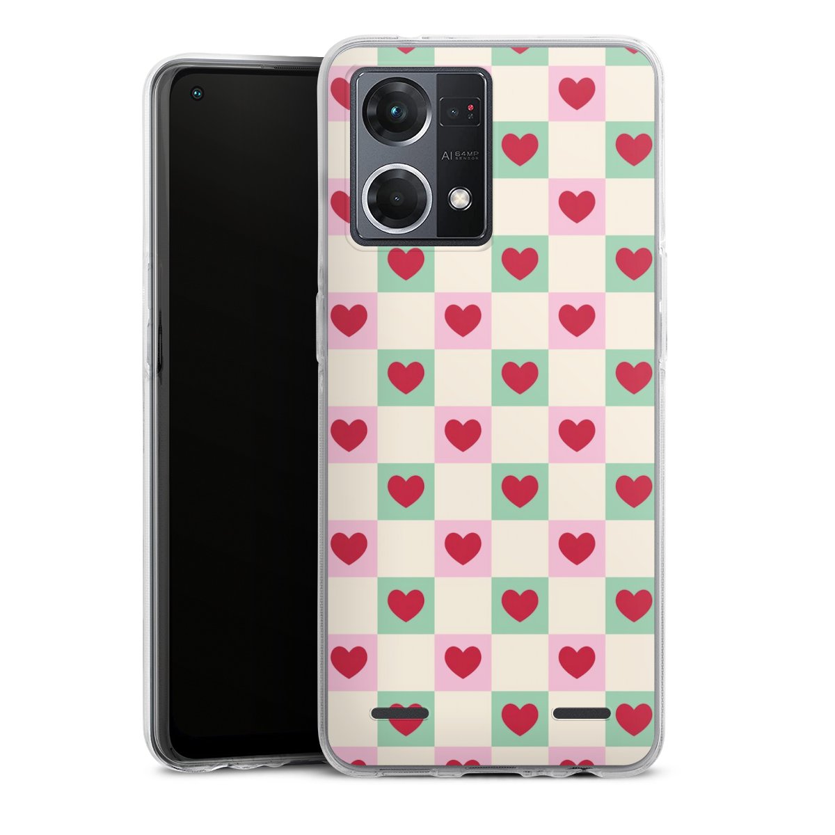 Valentine Checked Hearts Pattern Pink Green