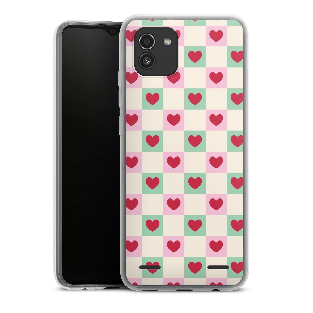Valentine Checked Hearts Pattern Pink Green