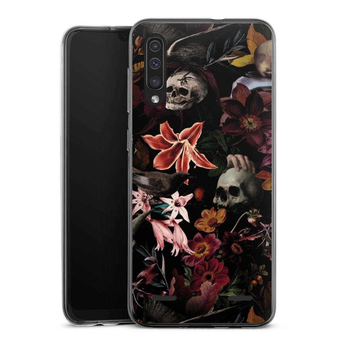 Skulls and Flowers on Dark Background