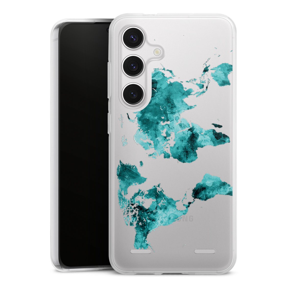 World Map Teal Transparent