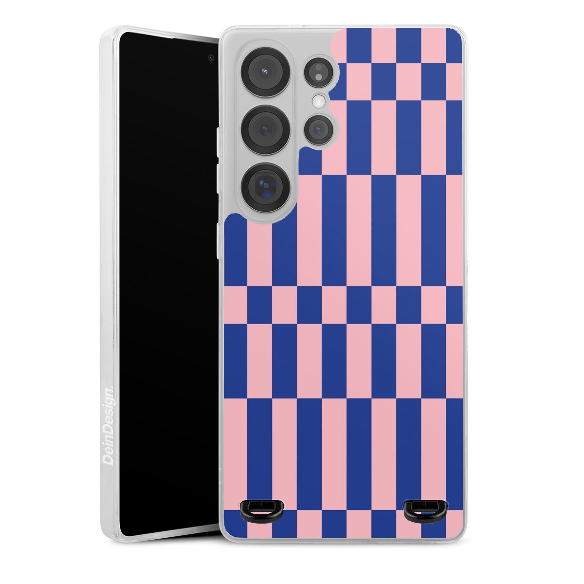 Checked Abstract Bold Electric Blue and Pink Color Block