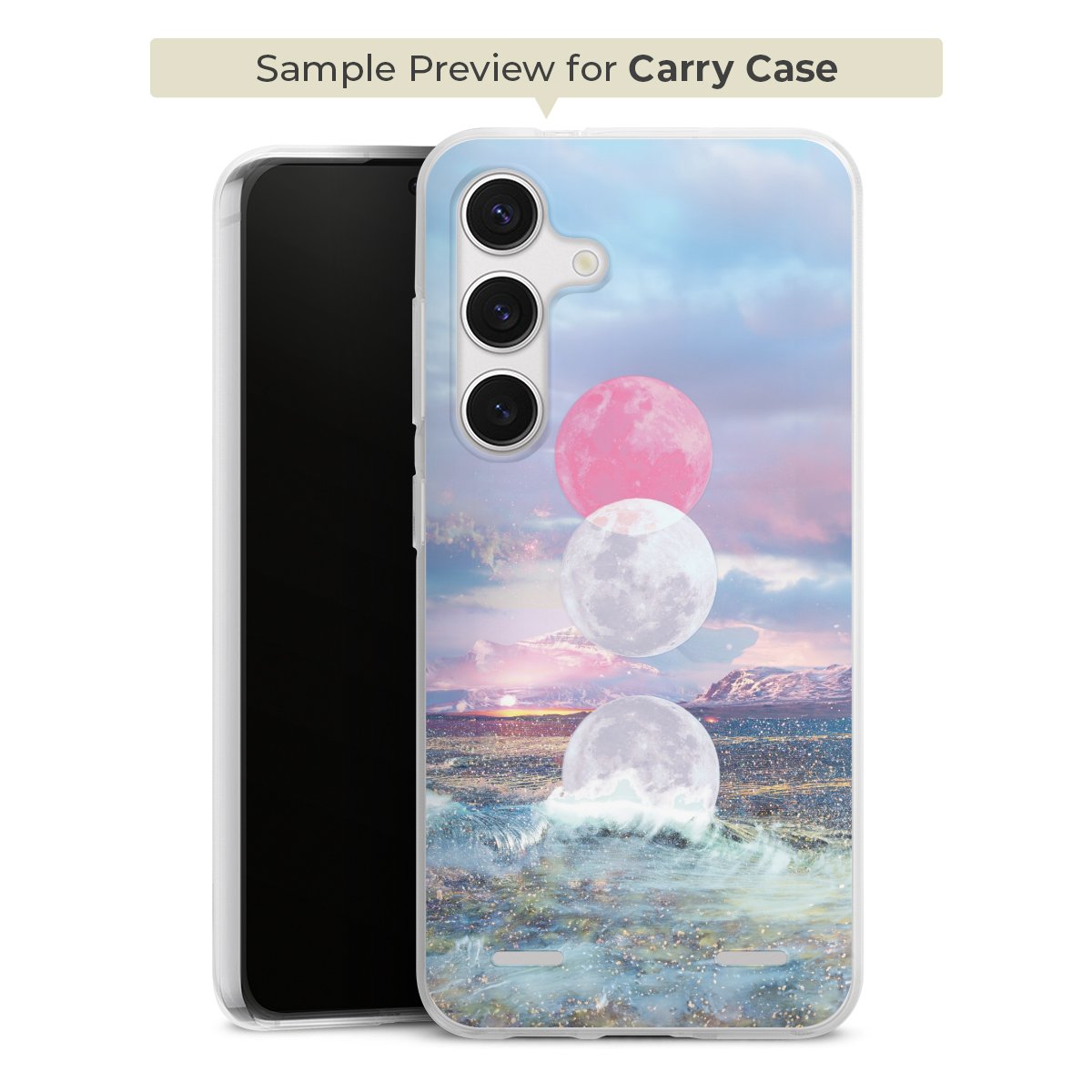 For our Carry Case Single we are using our advanced direct printing technology. The backside is fully printabale, the frame is left unprinted. You can order the phone case without print, printed completely or also with a partial print. Choose one of our exclusive, pre-made shop designs or let your creativity shine and create your very own unique design with your pictures, overlays and text.