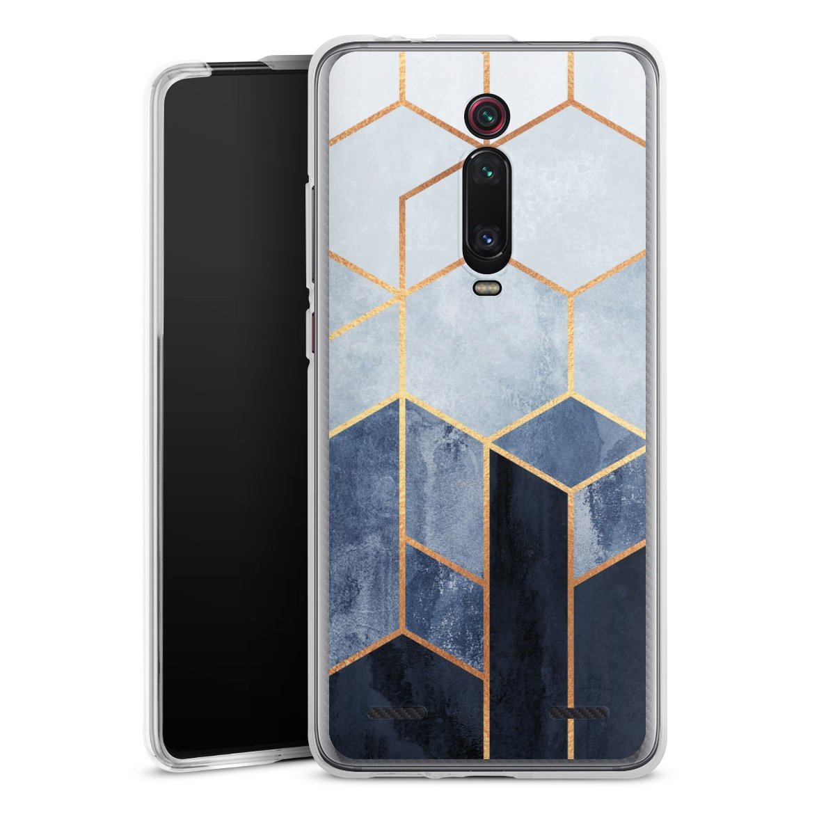 Soft Blue Hexagons Gold Print