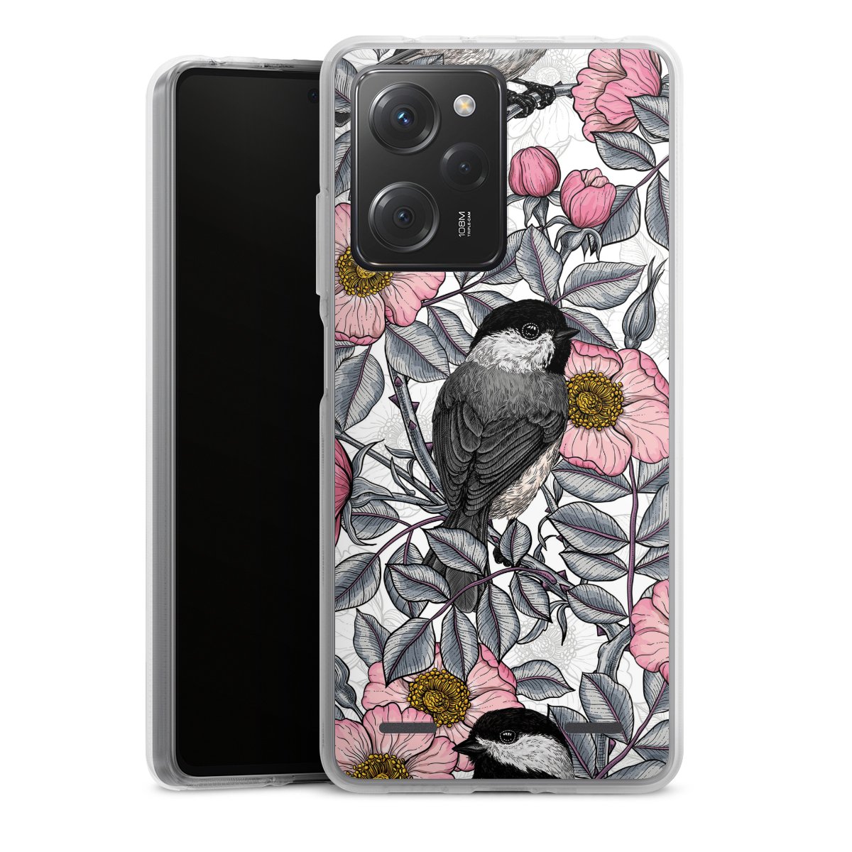 Chickadees and Wild Rose
