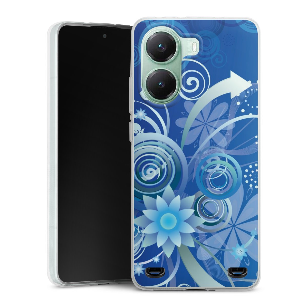 Flowers and Swirls Blue