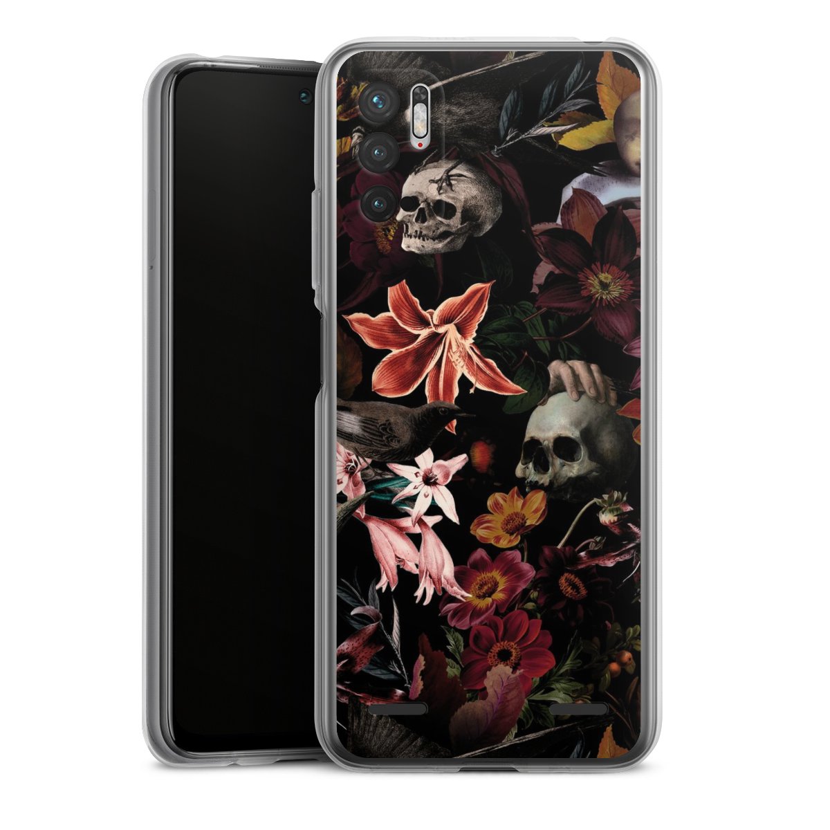 Skulls and Flowers on Dark Background