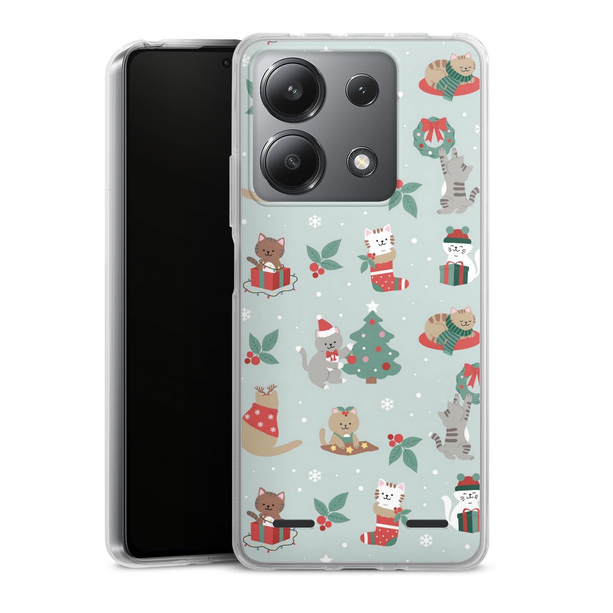 Cute Winter Wonderland Christmas Festive Cats on Teal