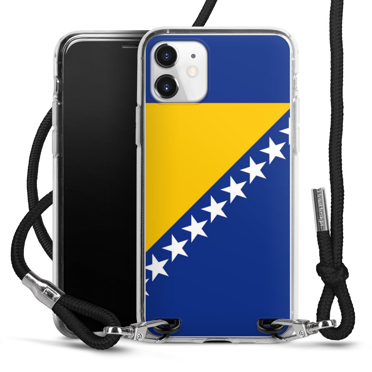 The flexible case is made from a high quality TPU material (thermoplastic Polyurethan). Thanks to its long-lasting and break resistant characteristics, the case is flexible yet consistent in form and has a great grip and feel. The textile strap made from Polyester gives a chic yet casual accent allowing you to carry your phone like a bag or necklace - a practical gadget perfect for your next adventure. The textile strap is about 1.70 meters long and the length can easily be adjusted through the knots. Our Carry Case is available in black, red, pink, grey, mustard, dark green and royal blue. We added a metal fastening to give the product an elegant touch. The ends of the textile strap are covered with metallic end caps to protect them against fraying.
