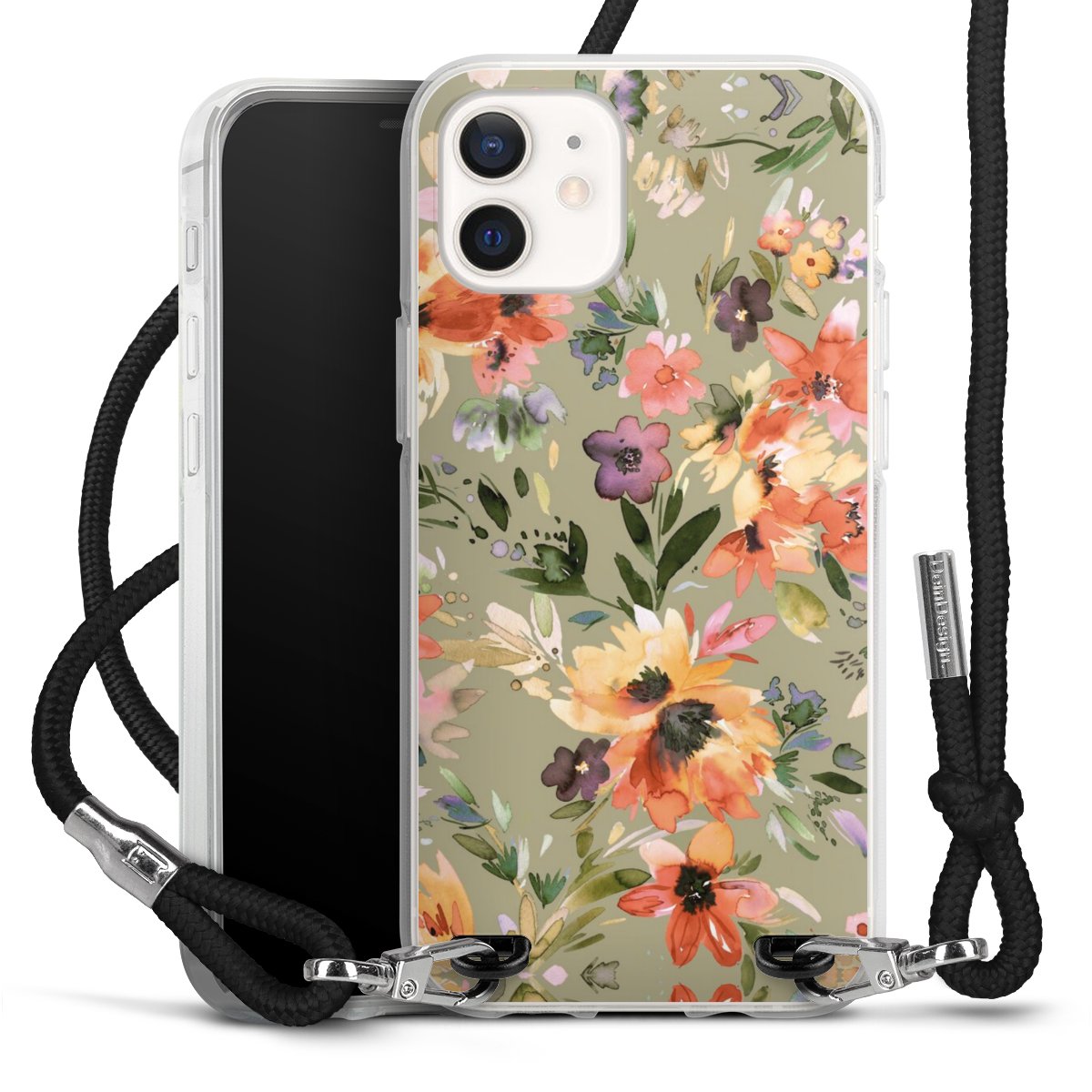 Keep your phone handy at all times, thanks to the flexible silicone case with a textile strap.