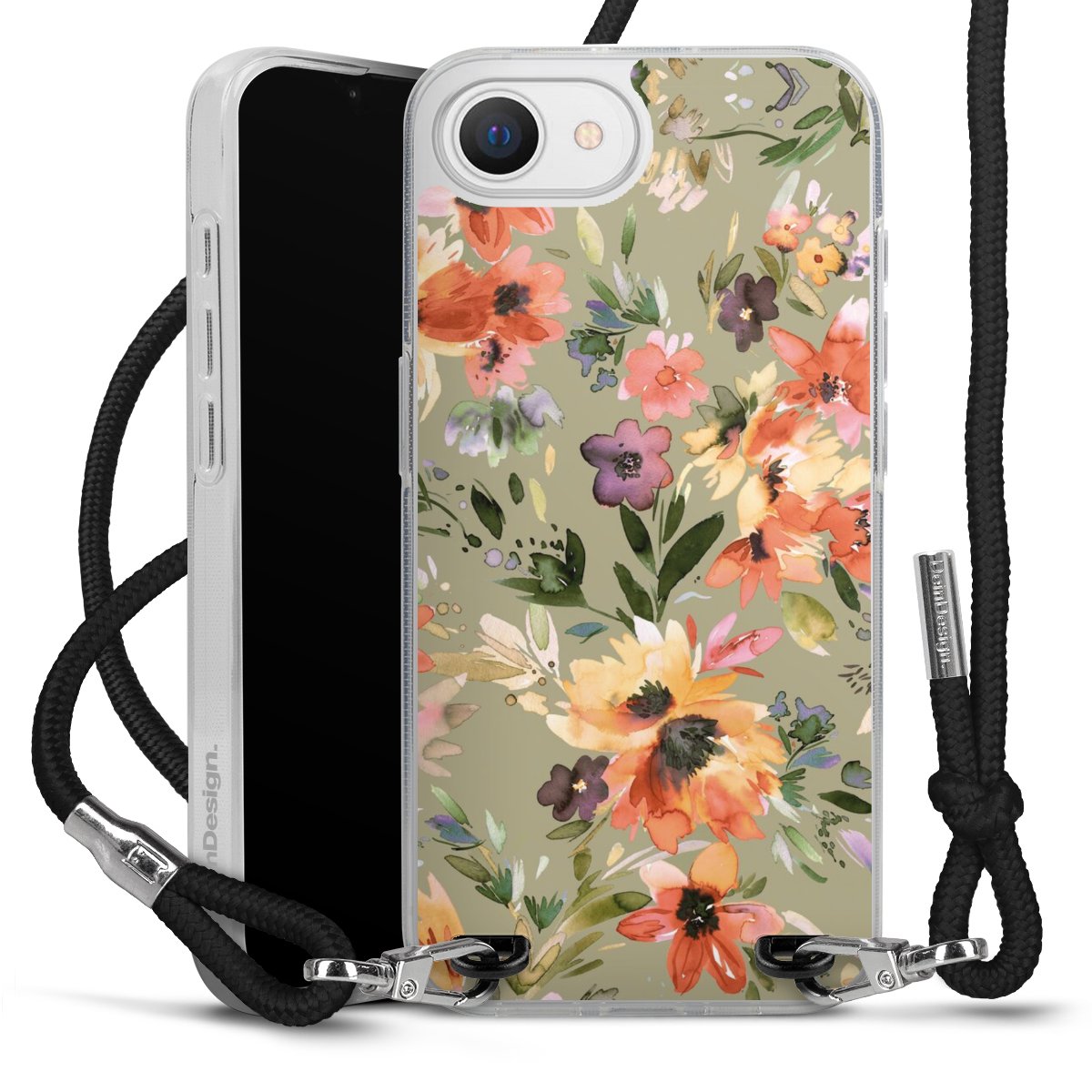 Keep your phone handy at all times, thanks to the flexible silicone case with a textile strap.