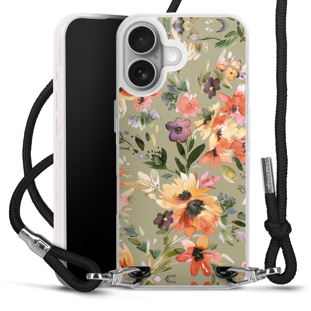Keep your phone handy at all times, thanks to the flexible silicone case with a textile strap.