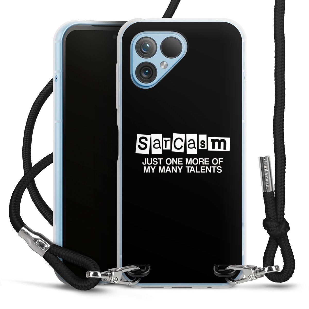 Keep your phone handy at all times, thanks to the flexible silicone case with a textile strap.