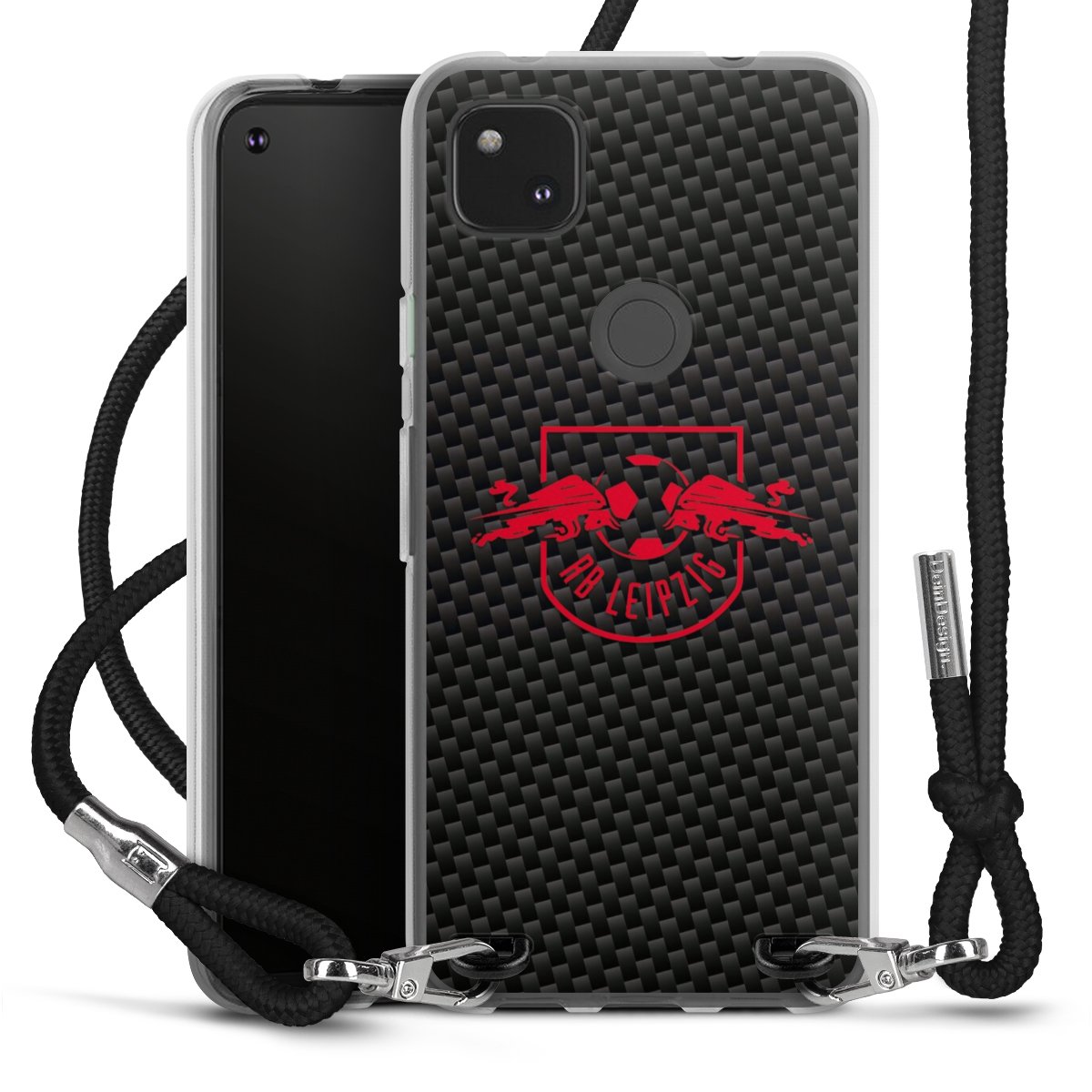 Red RB Leipzig logo on carbon look