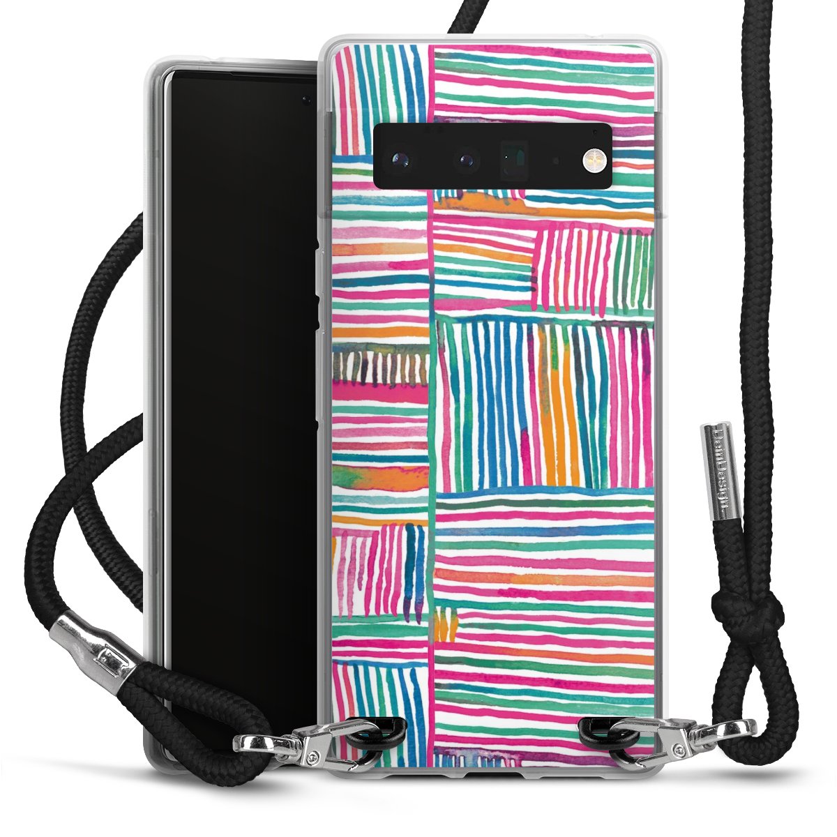 Keep your phone handy at all times, thanks to the flexible silicone case with a textile strap.