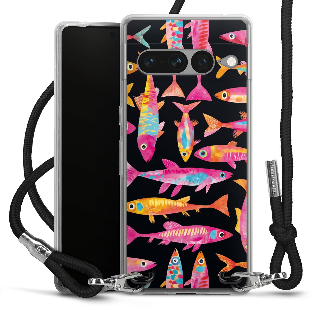 Keep your phone handy at all times, thanks to the flexible silicone case with a textile strap.