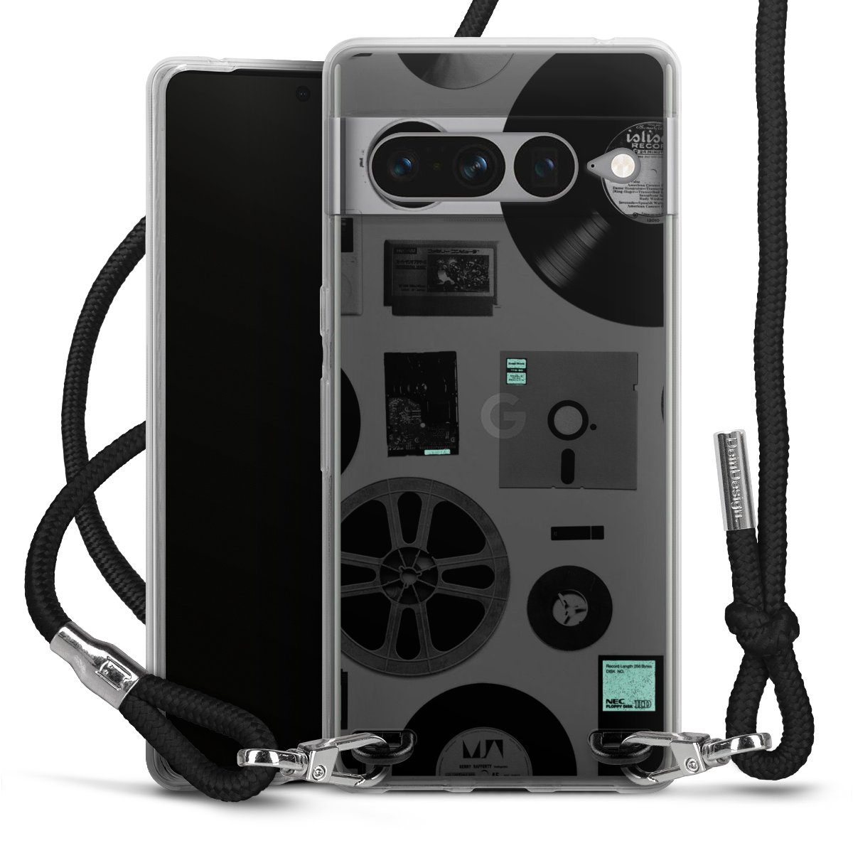 Keep your phone handy at all times, thanks to the flexible silicone case with a textile strap.