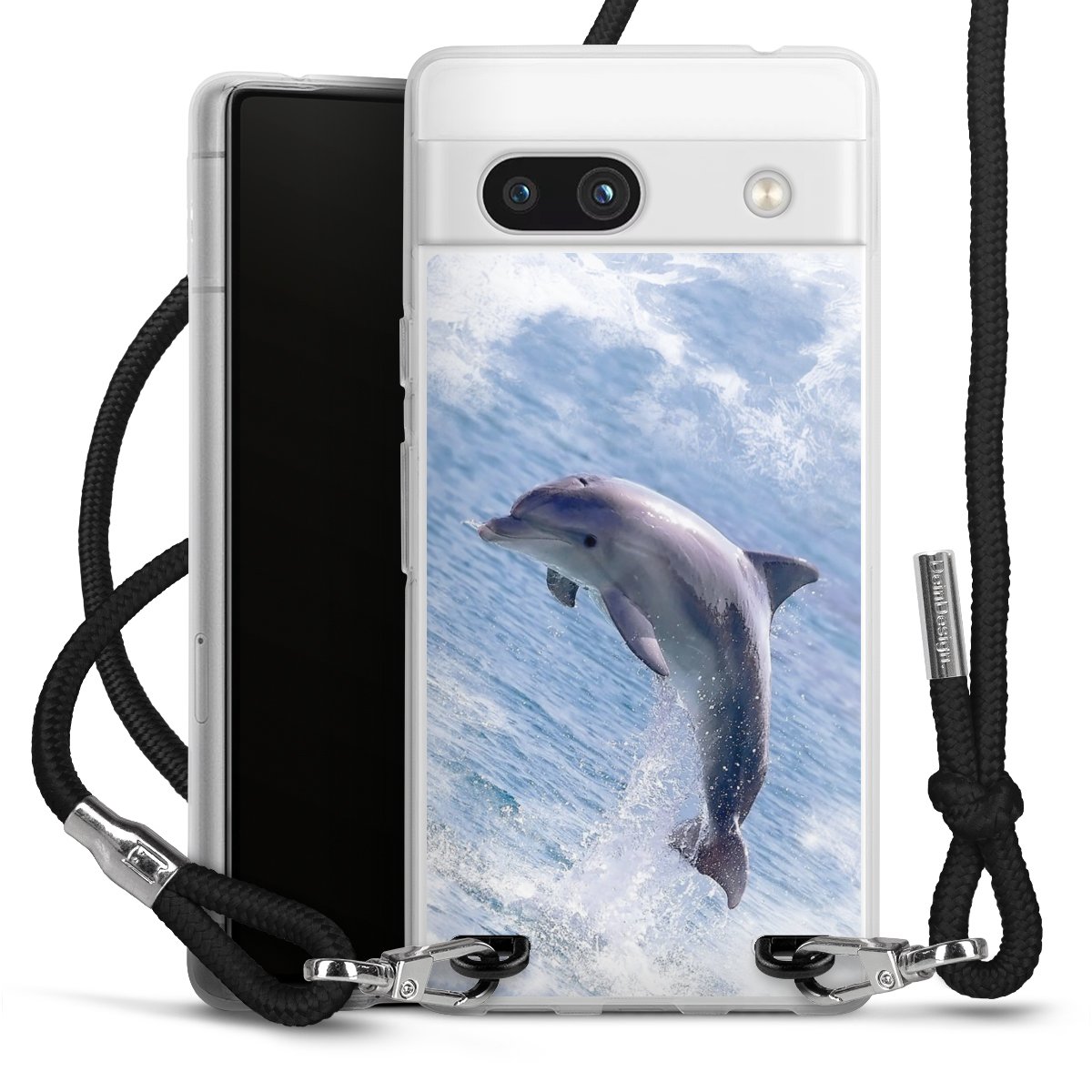 Keep your phone handy at all times, thanks to the flexible silicone case with a textile strap.