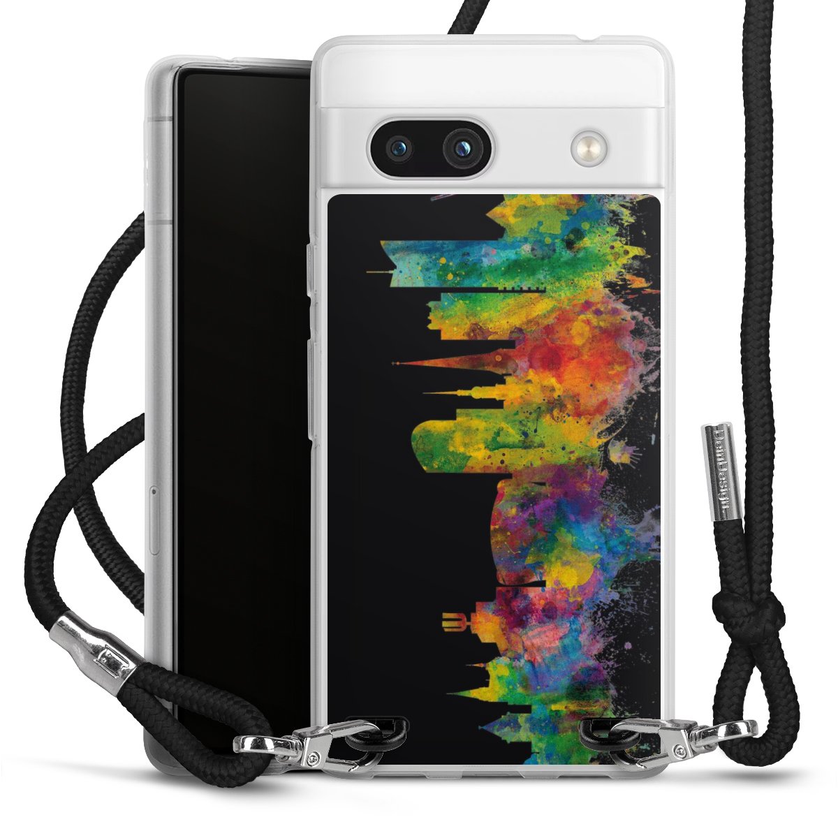 Keep your phone handy at all times, thanks to the flexible silicone case with a textile strap.