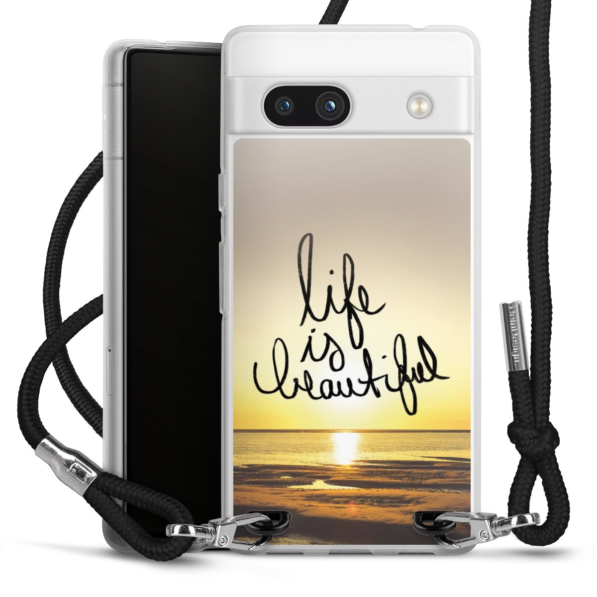The flexible case is made from a high quality TPU material (thermoplastic Polyurethan). Thanks to its long-lasting and break resistant characteristics, the case is flexible yet consistent in form and has a great grip and feel. The textile strap made from Polyester gives a chic yet casual accent allowing you to carry your phone like a bag or necklace - a practical gadget perfect for your next adventure. The textile strap is about 1.70 meters long and the length can easily be adjusted through the knots. Our Carry Case is available in black, red, pink, grey, mustard, dark green and royal blue. We added a metal fastening to give the product an elegant touch. The ends of the textile strap are covered with metallic end caps to protect them against fraying.