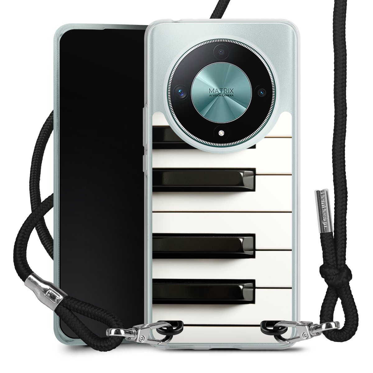 The flexible case is made from a high quality TPU material (thermoplastic Polyurethan). Thanks to its long-lasting and break resistant characteristics, the case is flexible yet consistent in form and has a great grip and feel. The textile strap made from Polyester gives a chic yet casual accent allowing you to carry your phone like a bag or necklace - a practical gadget perfect for your next adventure. The textile strap is about 1.70 meters long and the length can easily be adjusted through the knots. Our Carry Case is available in black, red, pink, grey, mustard, dark green and royal blue. We added a metal fastening to give the product an elegant touch. The ends of the textile strap are covered with metallic end caps to protect them against fraying.