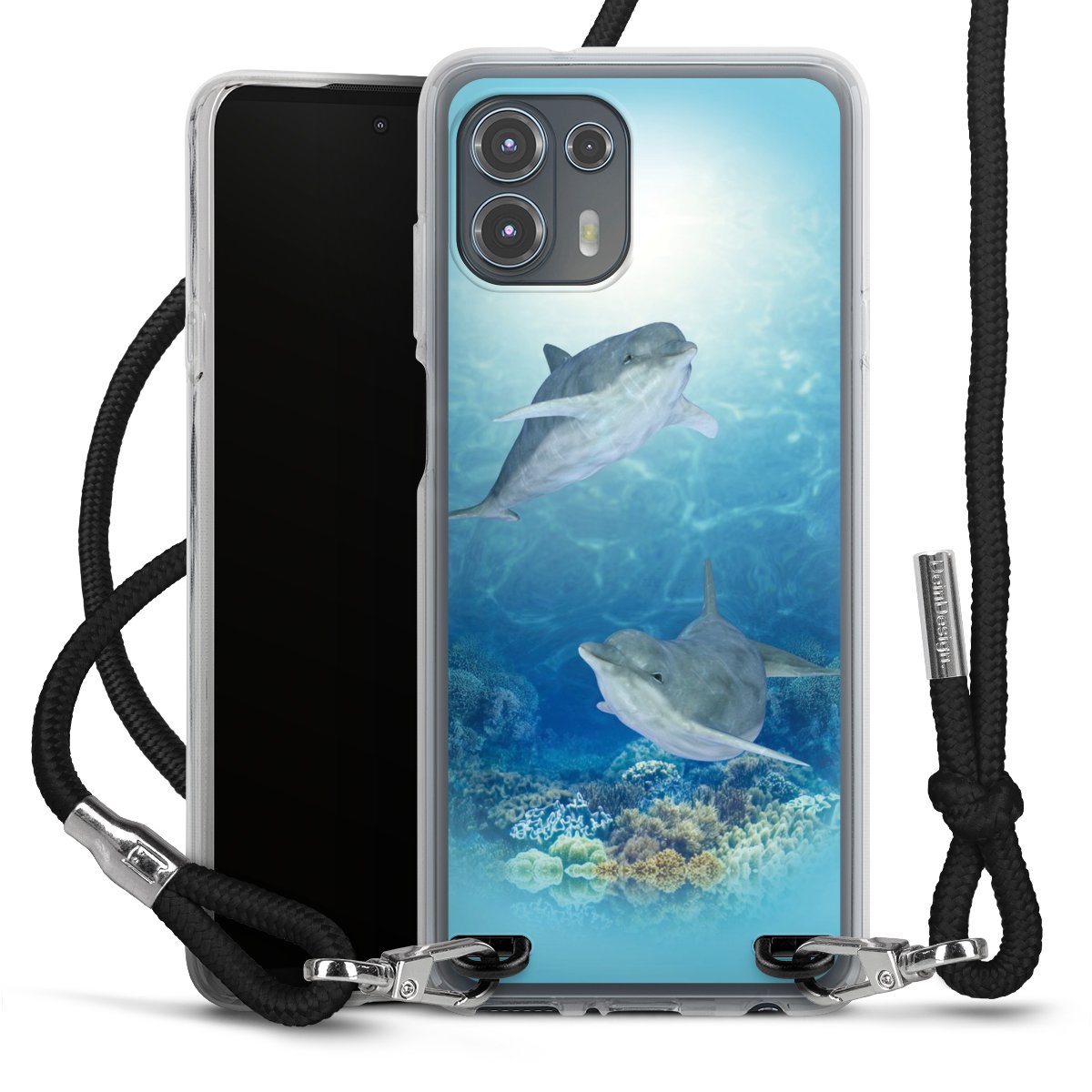 Keep your phone handy at all times, thanks to the flexible silicone case with a textile strap.
