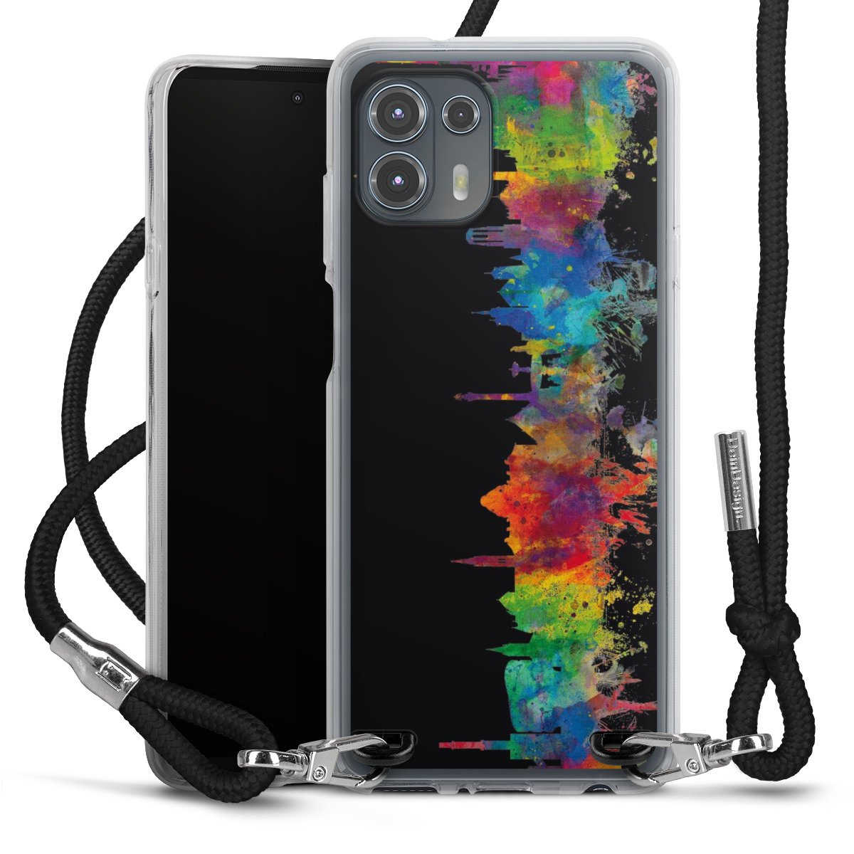 The flexible case is made from a high quality TPU material (thermoplastic Polyurethan). Thanks to its long-lasting and break resistant characteristics, the case is flexible yet consistent in form and has a great grip and feel. The textile strap made from Polyester gives a chic yet casual accent allowing you to carry your phone like a bag or necklace - a practical gadget perfect for your next adventure. The textile strap is about 1.70 meters long and the length can easily be adjusted through the knots. Our Carry Case is available in black, red, pink, grey, mustard, dark green and royal blue. We added a metal fastening to give the product an elegant touch. The ends of the textile strap are covered with metallic end caps to protect them against fraying.