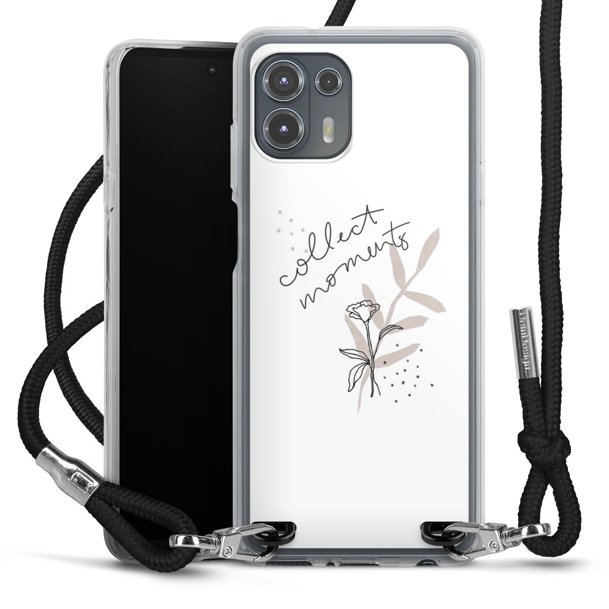 Keep your phone handy at all times, thanks to the flexible silicone case with a textile strap.