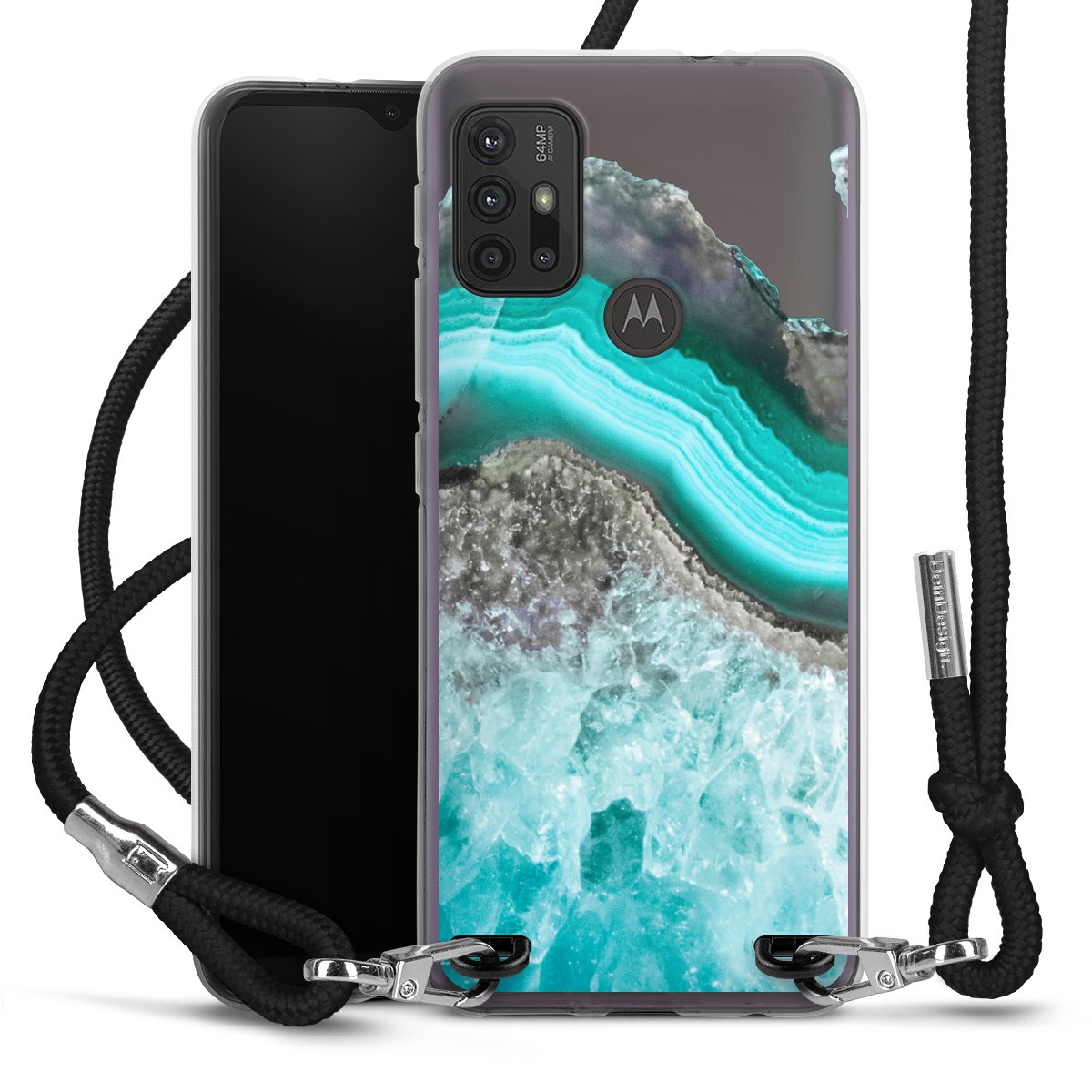 The flexible case is made from a high quality TPU material (thermoplastic Polyurethan). Thanks to its long-lasting and break resistant characteristics, the case is flexible yet consistent in form and has a great grip and feel. The textile strap made from Polyester gives a chic yet casual accent allowing you to carry your phone like a bag or necklace - a practical gadget perfect for your next adventure. The textile strap is about 1.70 meters long and the length can easily be adjusted through the knots. Our Carry Case is available in black, red, pink, grey, mustard, dark green and royal blue. We added a metal fastening to give the product an elegant touch. The ends of the textile strap are covered with metallic end caps to protect them against fraying.