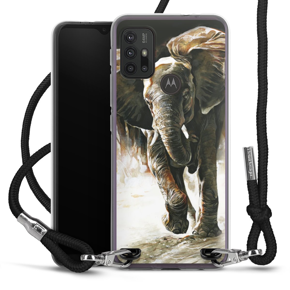 The flexible case is made from a high quality TPU material (thermoplastic Polyurethan). Thanks to its long-lasting and break resistant characteristics, the case is flexible yet consistent in form and has a great grip and feel. The textile strap made from Polyester gives a chic yet casual accent allowing you to carry your phone like a bag or necklace - a practical gadget perfect for your next adventure. The textile strap is about 1.70 meters long and the length can easily be adjusted through the knots. Our Carry Case is available in black, red, pink, grey, mustard, dark green and royal blue. We added a metal fastening to give the product an elegant touch. The ends of the textile strap are covered with metallic end caps to protect them against fraying.