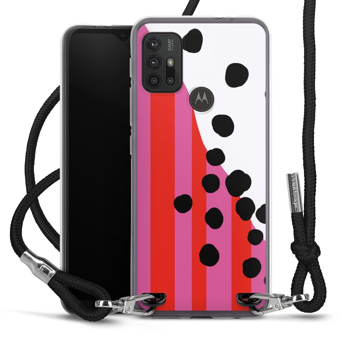 The flexible case is made from a high quality TPU material (thermoplastic Polyurethan). Thanks to its long-lasting and break resistant characteristics, the case is flexible yet consistent in form and has a great grip and feel. The textile strap made from Polyester gives a chic yet casual accent allowing you to carry your phone like a bag or necklace - a practical gadget perfect for your next adventure. The textile strap is about 1.70 meters long and the length can easily be adjusted through the knots. Our Carry Case is available in black, red, pink, grey, mustard, dark green and royal blue. We added a metal fastening to give the product an elegant touch. The ends of the textile strap are covered with metallic end caps to protect them against fraying.