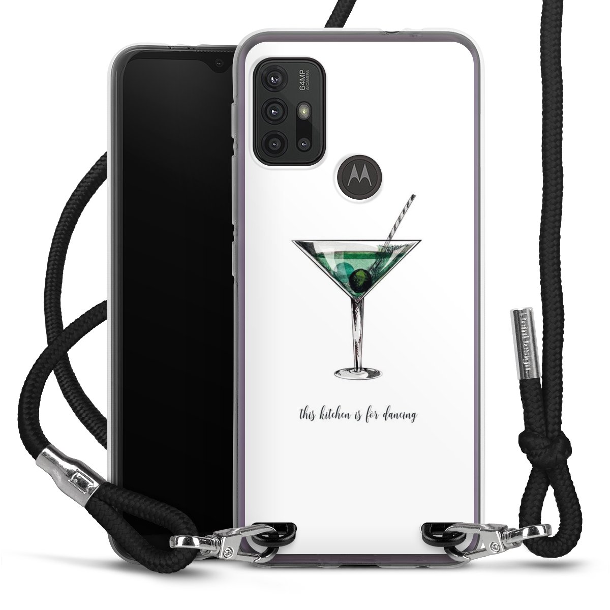 Keep your phone handy at all times, thanks to the flexible silicone case with a textile strap.