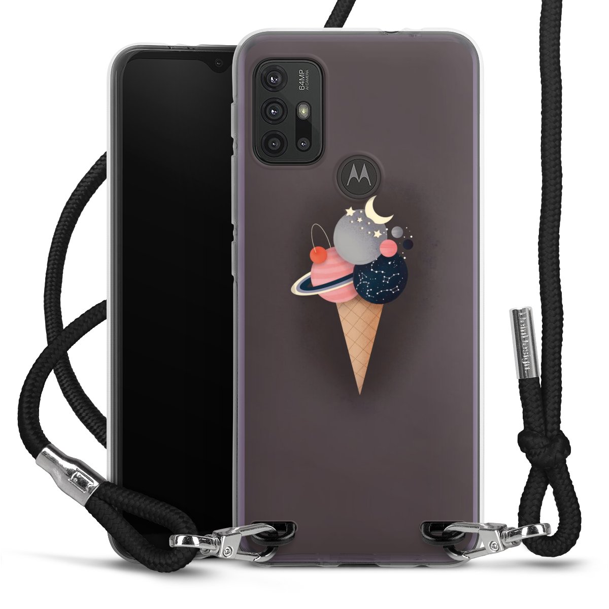 Keep your phone handy at all times, thanks to the flexible silicone case with a textile strap.