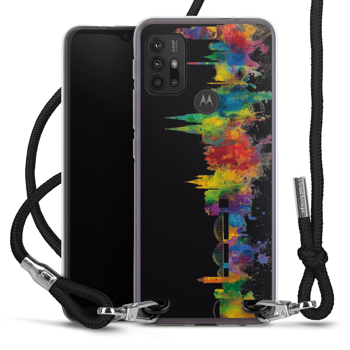 The flexible case is made from a high quality TPU material (thermoplastic Polyurethan). Thanks to its long-lasting and break resistant characteristics, the case is flexible yet consistent in form and has a great grip and feel. The textile strap made from Polyester gives a chic yet casual accent allowing you to carry your phone like a bag or necklace - a practical gadget perfect for your next adventure. The textile strap is about 1.70 meters long and the length can easily be adjusted through the knots. Our Carry Case is available in black, red, pink, grey, mustard, dark green and royal blue. We added a metal fastening to give the product an elegant touch. The ends of the textile strap are covered with metallic end caps to protect them against fraying.