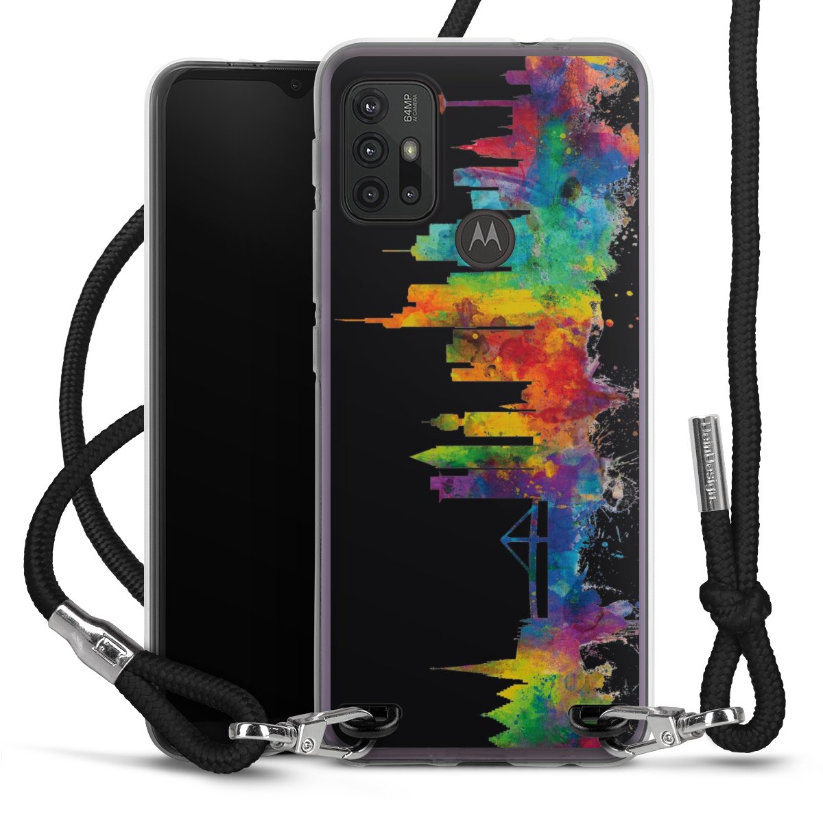 The flexible case is made from a high quality TPU material (thermoplastic Polyurethan). Thanks to its long-lasting and break resistant characteristics, the case is flexible yet consistent in form and has a great grip and feel. The textile strap made from Polyester gives a chic yet casual accent allowing you to carry your phone like a bag or necklace - a practical gadget perfect for your next adventure. The textile strap is about 1.70 meters long and the length can easily be adjusted through the knots. Our Carry Case is available in black, red, pink, grey, mustard, dark green and royal blue. We added a metal fastening to give the product an elegant touch. The ends of the textile strap are covered with metallic end caps to protect them against fraying.