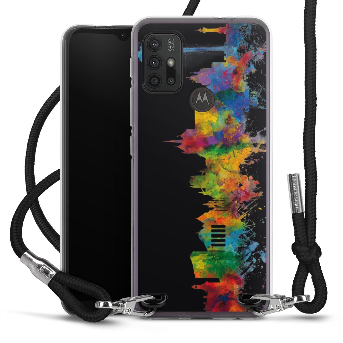 Keep your phone handy at all times, thanks to the flexible silicone case with a textile strap.