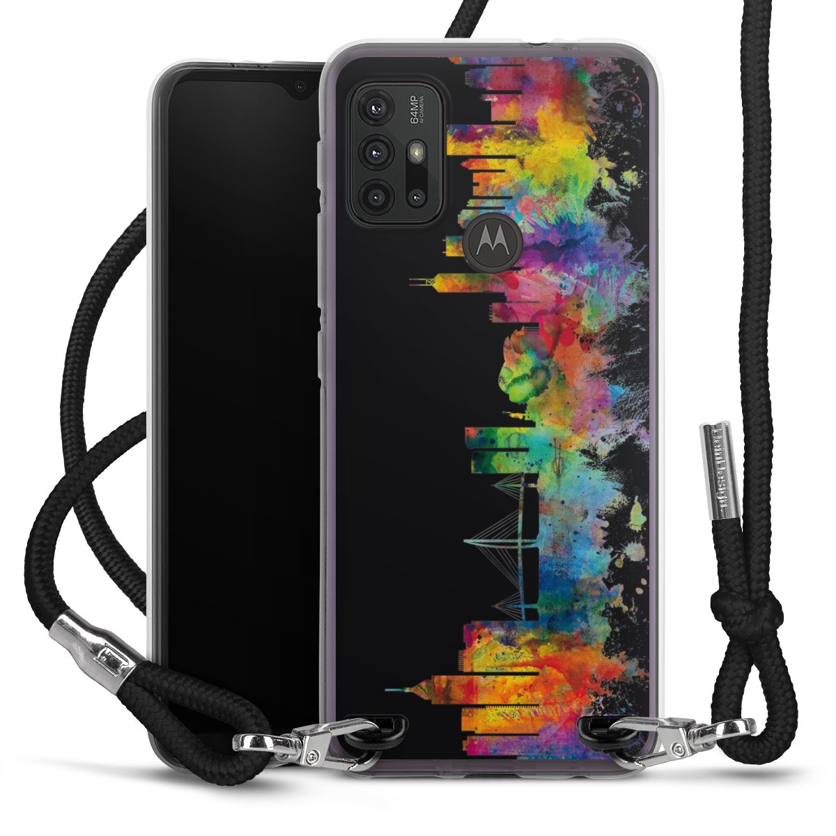 The flexible case is made from a high quality TPU material (thermoplastic Polyurethan). Thanks to its long-lasting and break resistant characteristics, the case is flexible yet consistent in form and has a great grip and feel. The textile strap made from Polyester gives a chic yet casual accent allowing you to carry your phone like a bag or necklace - a practical gadget perfect for your next adventure. The textile strap is about 1.70 meters long and the length can easily be adjusted through the knots. Our Carry Case is available in black, red, pink, grey, mustard, dark green and royal blue. We added a metal fastening to give the product an elegant touch. The ends of the textile strap are covered with metallic end caps to protect them against fraying.