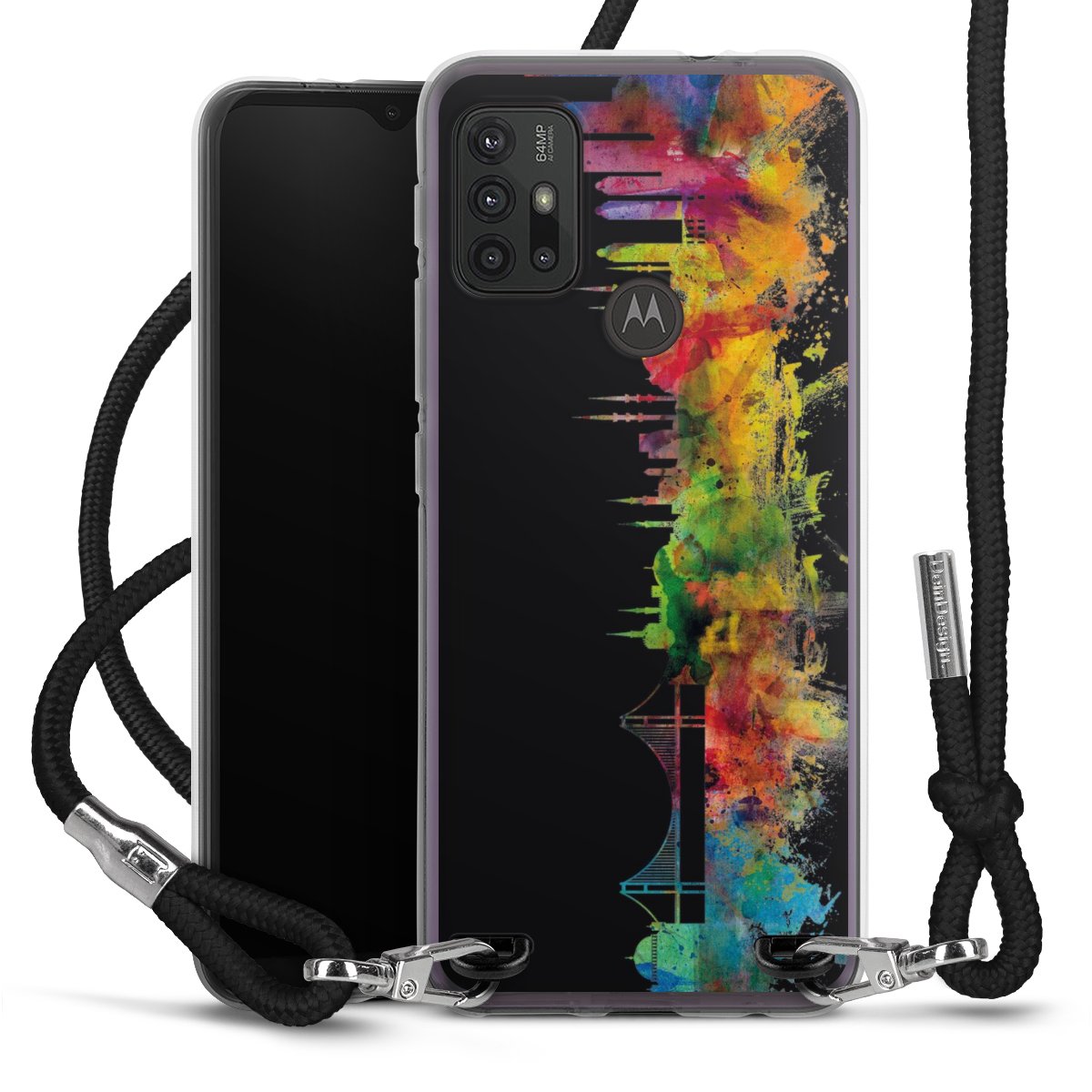 The flexible case is made from a high quality TPU material (thermoplastic Polyurethan). Thanks to its long-lasting and break resistant characteristics, the case is flexible yet consistent in form and has a great grip and feel. The textile strap made from Polyester gives a chic yet casual accent allowing you to carry your phone like a bag or necklace - a practical gadget perfect for your next adventure. The textile strap is about 1.70 meters long and the length can easily be adjusted through the knots. Our Carry Case is available in black, red, pink, grey, mustard, dark green and royal blue. We added a metal fastening to give the product an elegant touch. The ends of the textile strap are covered with metallic end caps to protect them against fraying.