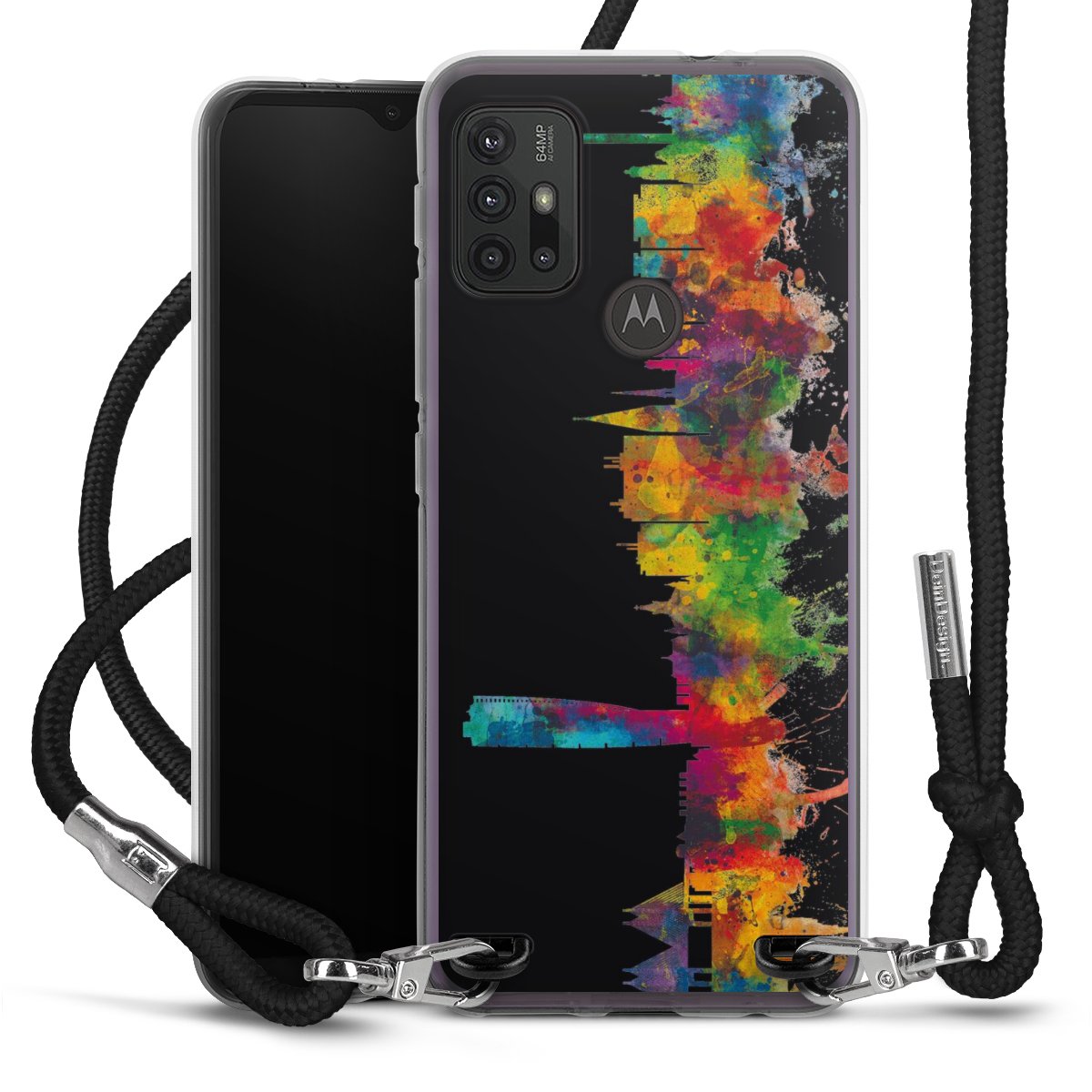 Keep your phone handy at all times, thanks to the flexible silicone case with a textile strap.