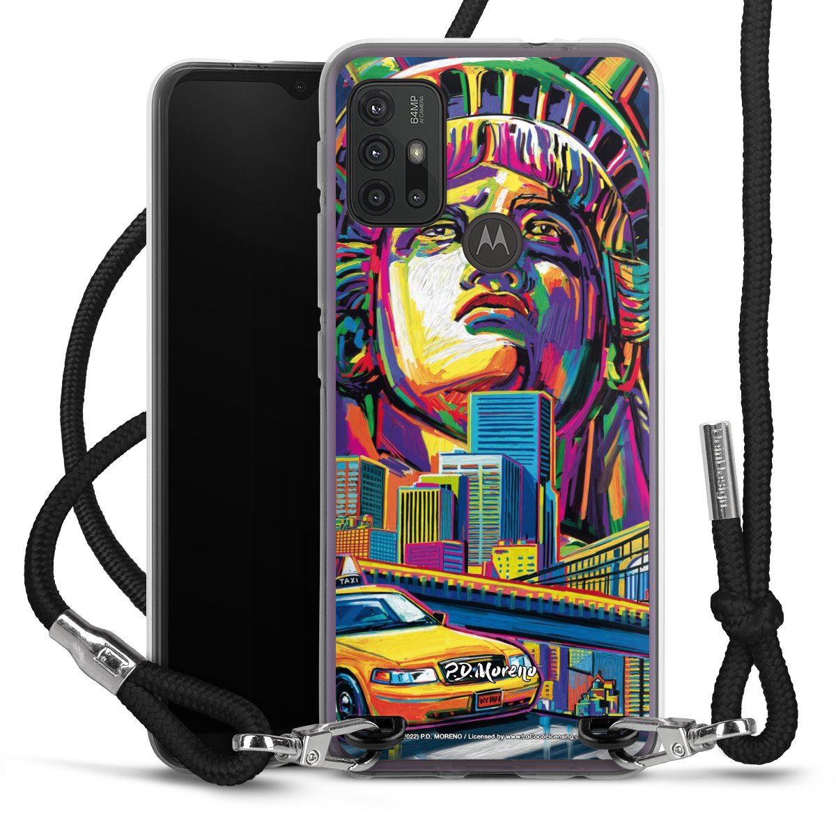Keep your phone handy at all times, thanks to the flexible silicone case with a textile strap.