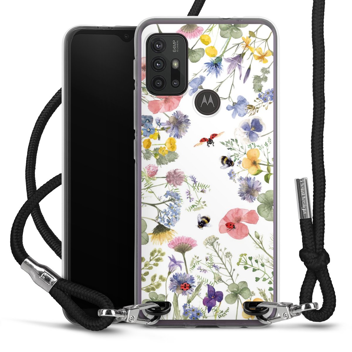Keep your phone handy at all times, thanks to the flexible silicone case with a textile strap.