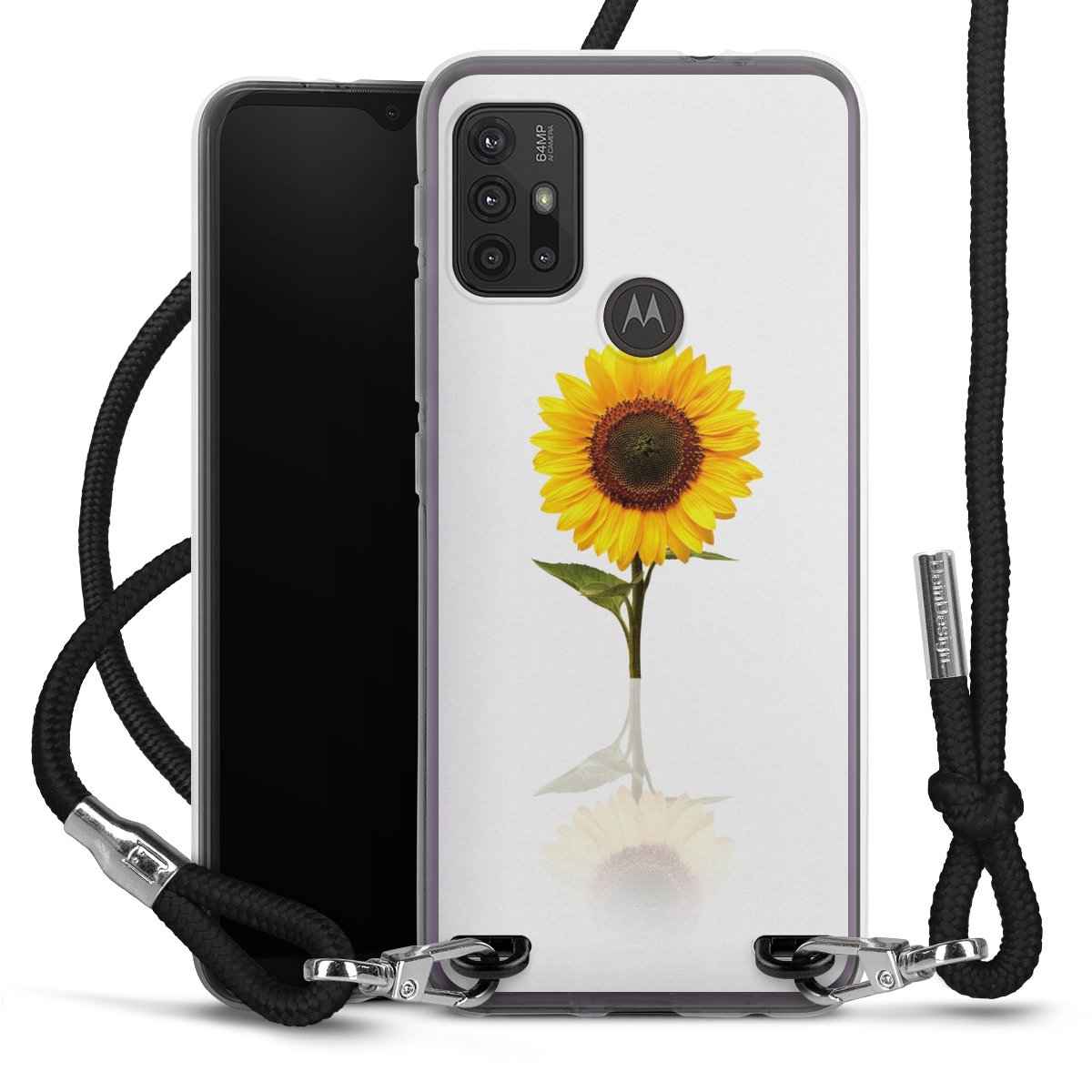 Keep your phone handy at all times, thanks to the flexible silicone case with a textile strap.