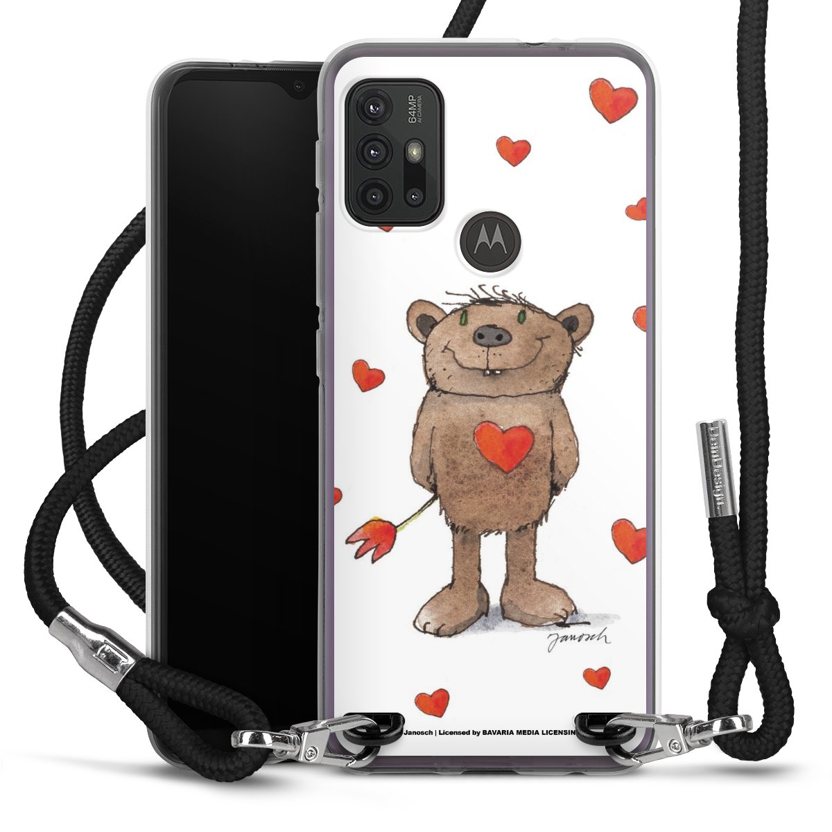 Keep your phone handy at all times, thanks to the flexible silicone case with a textile strap.
