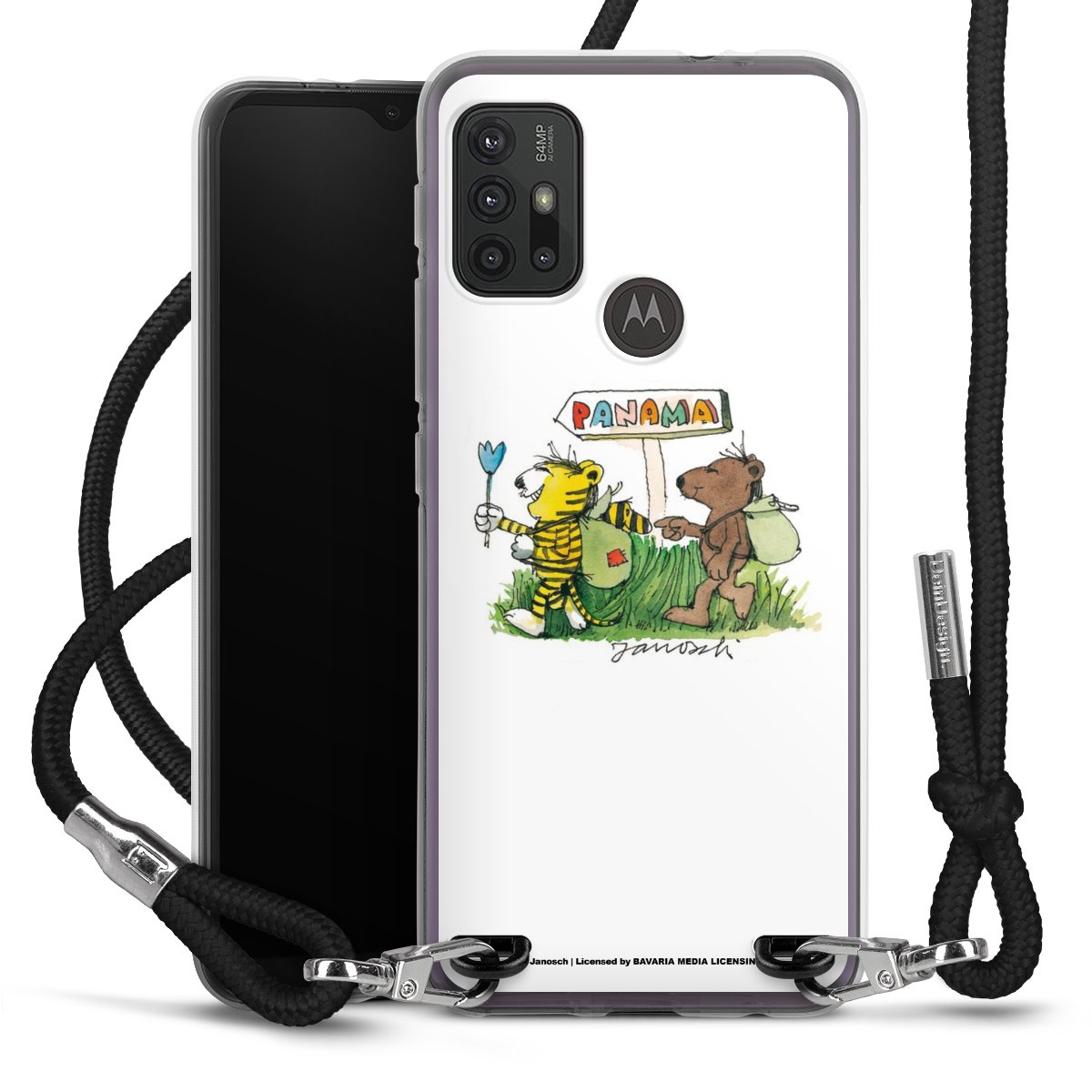 Keep your phone handy at all times, thanks to the flexible silicone case with a textile strap.