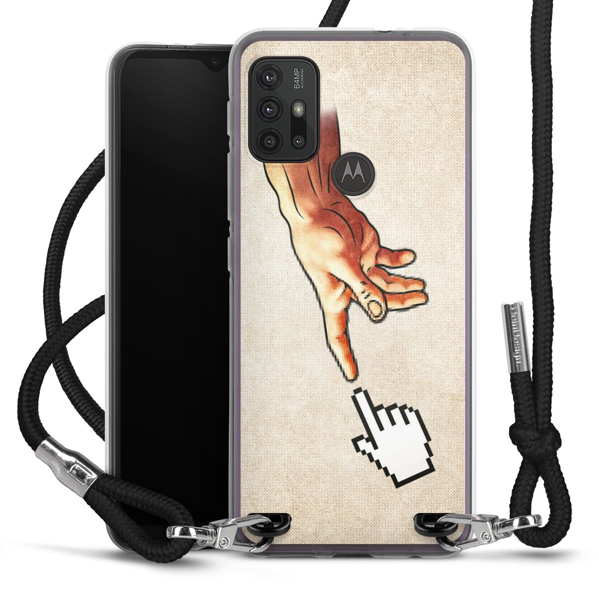 Keep your phone handy at all times, thanks to the flexible silicone case with a textile strap.