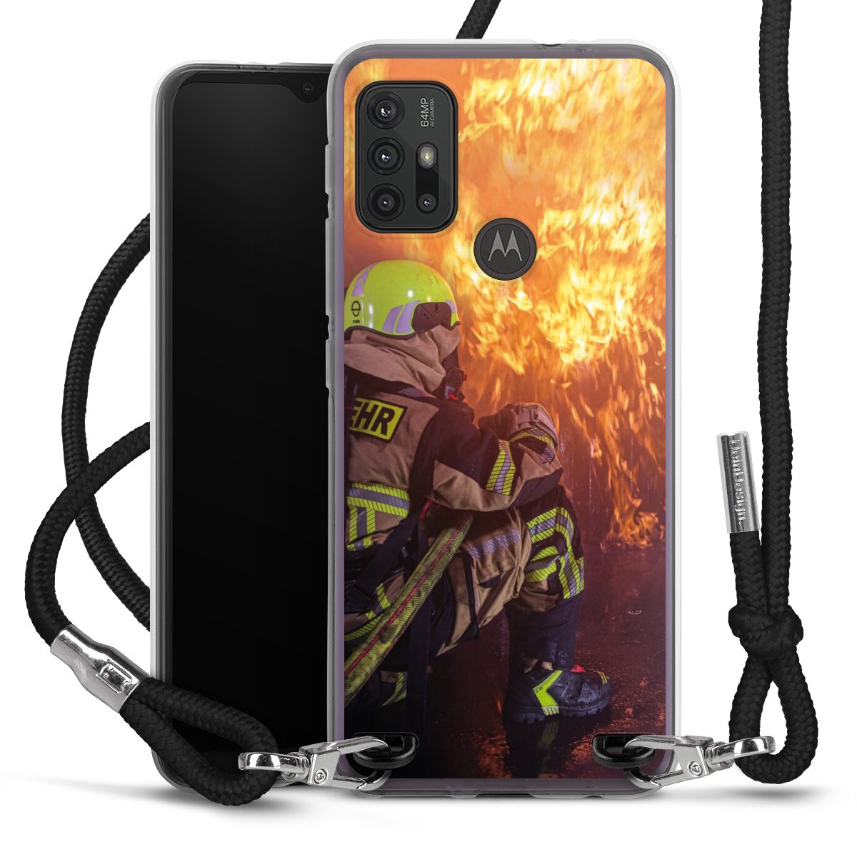 Keep your phone handy at all times, thanks to the flexible silicone case with a textile strap.