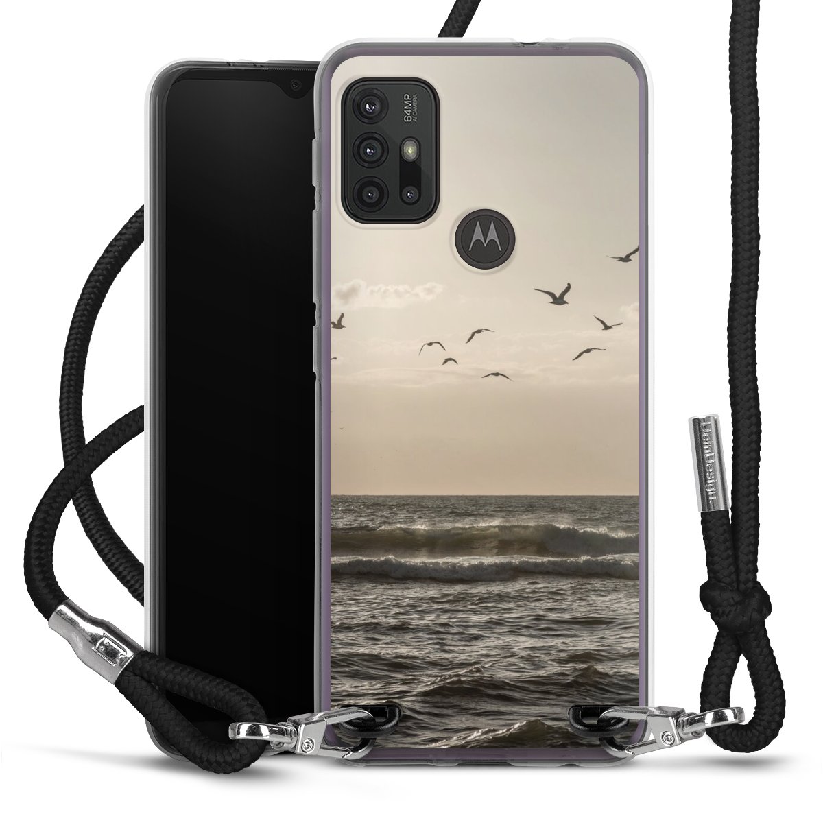 Keep your phone handy at all times, thanks to the flexible silicone case with a textile strap.