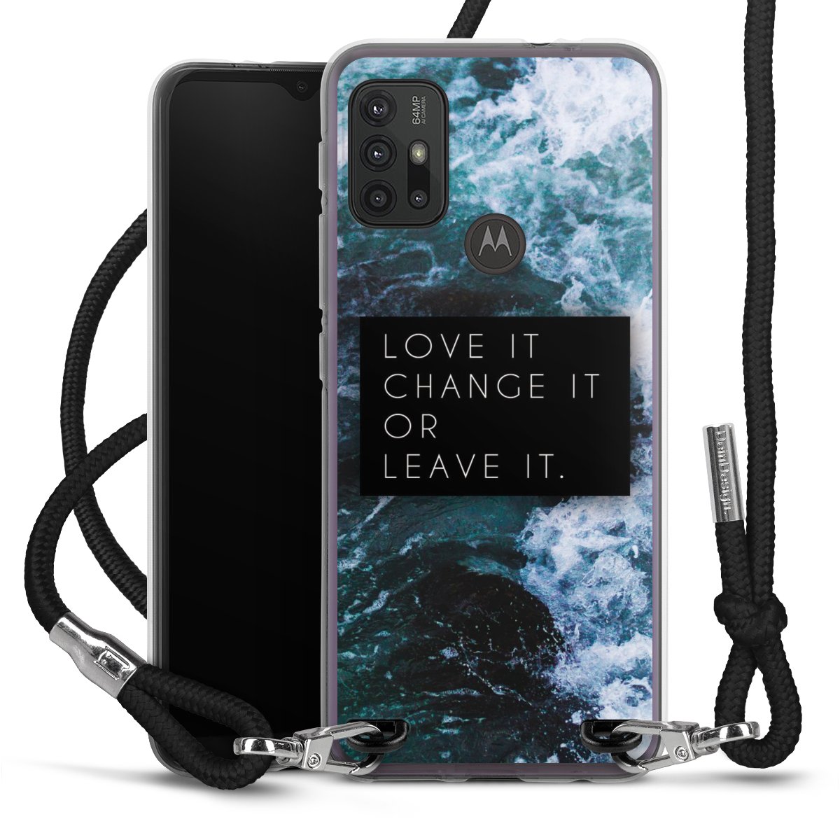 Keep your phone handy at all times, thanks to the flexible silicone case with a textile strap.
